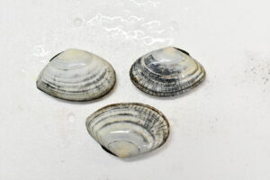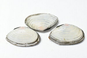 ↑サラガイ。今回の主役はアラスジサラガイですが、同じく白貝として流通する。アラスジサラガイには表面にザラザラとした凹凸があり、幅が狭い。