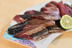 それでも味はやはり良く、生食で好まれるヒラソウダのような脂はないものの、この大きさでカツオに追いつくほどの濃い赤身の味がする。