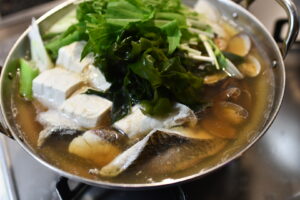 突然のひらめきだったので、岩海苔のような鍋に適しそうなものは手に入らなかった。なので三陸産のワカメで代用。