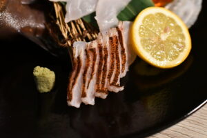クロハタの刺身、焼霜