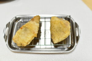 オオアカムツは尾に近い部位を皮を引いて揚げた。