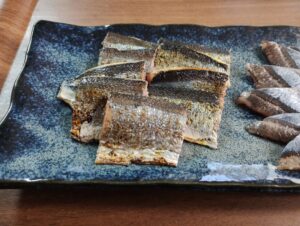 1尾をそのまま生で切りつけ、1尾は炙りにする。