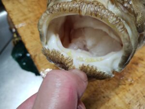 砂に潜り獲物を待ち伏せにするような魚なので、この皮膚で覆われることにより、砂が口内に入ることを防いでいるのかもしれない。