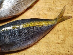 タカベというと、刺網などで漁獲されるのが普通だが、この個体は鱗はびっしり。