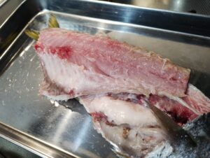 比較的大衆的なカマスなどと比べると、身の内側、骨に近いところまで脂が豊富なのである。